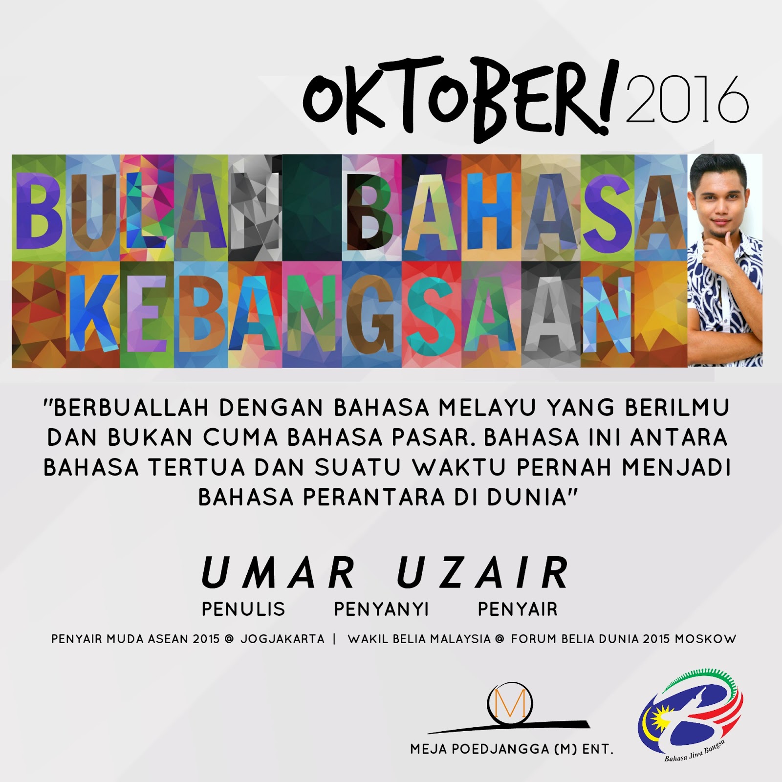 Oktober telah berbaki 20 hari. Sebagai aktivis, aku ada cita-cita yang besar samada dalam penganjuran acara dalam bentuk pendidikan dan hiburan bahasa, samada dalam promosi dan hebahan. Hanya sumber dana dan tenaga kerja yang membataskan. Pun, ini bukan pematah semangat. Tidak banyak, sedikit aku ingin melakukan sesuatu. Selain poster Bulan Bahasa Kebangsaan untuk dipromosikan, beberapa temubual dan siaran akhbar sedang diatur untuk memaklumkan kepada masyarakat tentang apresiasi terhadap bahasa kebangsaan.